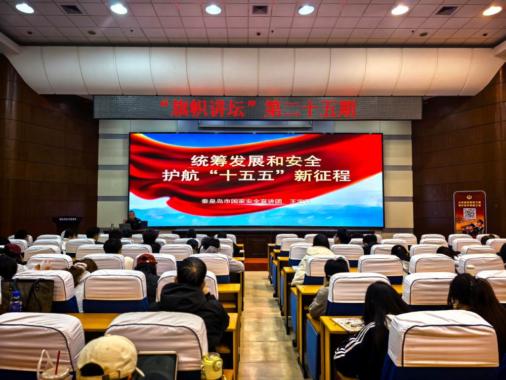 为深入贯彻落实总体国家安全观,扎实推进全民国家安全教育,切实提升全校师生国家安全意识与风险防范能力,4月15日,我校举办第二十五期“旗帜讲坛”,特邀秦皇岛市国家安全宣讲团成员、市公安局海港分局燕园派出所民警王宝军,作全民国家安全教育主题讲座。校党委宣传部、统战部、安全工作部、武装部负责人参加活动,秦皇岛校区300名学生代表到场聆听。讲座由太阳成集团tyc151cc行政负责人主持。